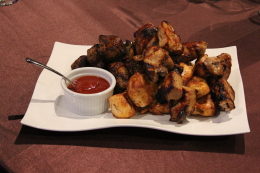 Marinated meats with house special mix of herbs and spices, grilled on a skewer over open flame, served with a side of golden potatoes